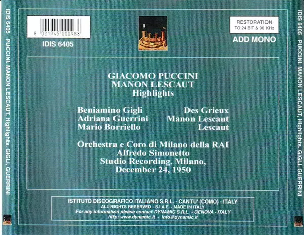 | Interpret | Giacomo Puccini | Manon Lescaut |