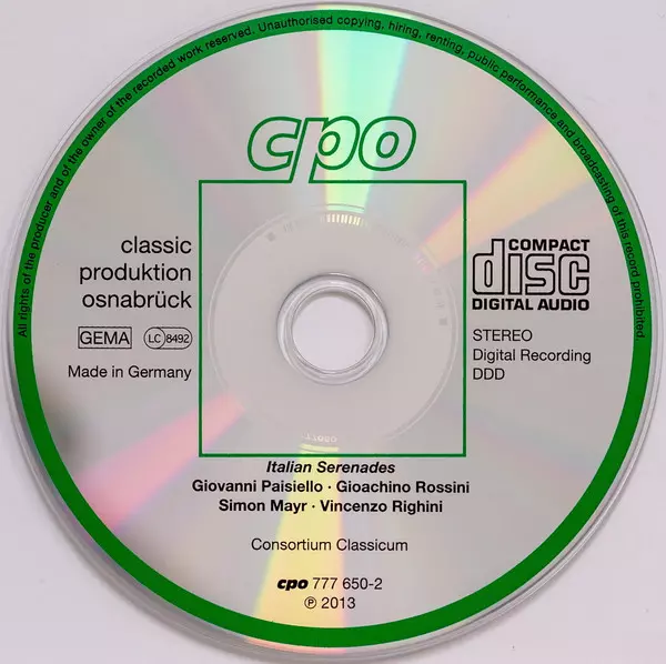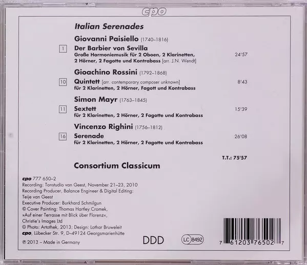 Interpret | Gioacchino Rossini | Consortium Classicum | Johannes Simon Mayr | Giovanni Paisiello | Vincenzo Righini |