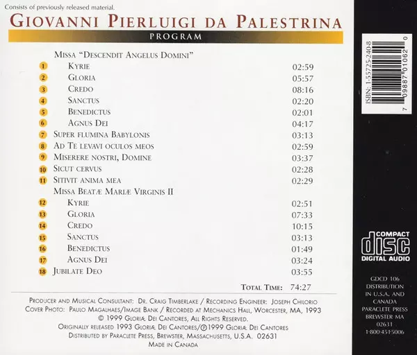 | Interpret | Giovanni Pierluigi da Palestrina | Gloriae Dei Cantores | Elizabeth C. Patterson |