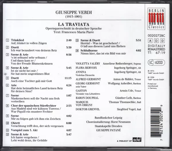 | La Traviata (Opernquerschnitt In Deutscher Sprache) |
