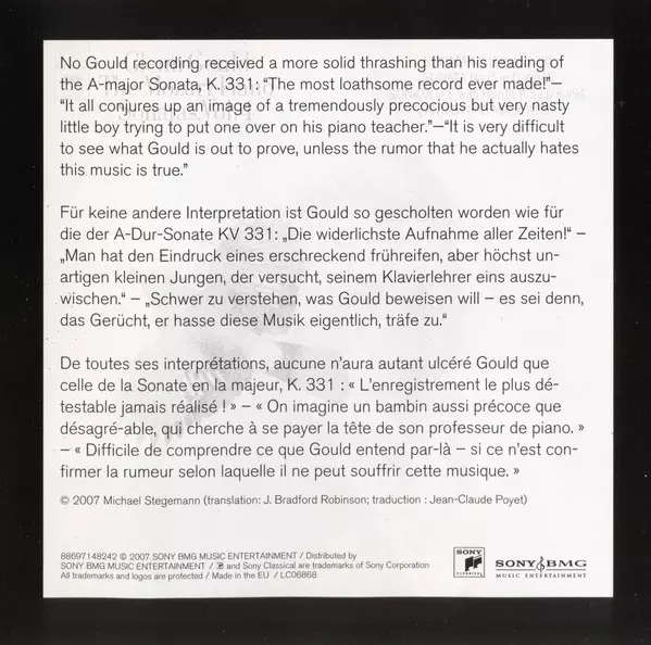 | Interpret | Wolfgang Amadeus Mozart | Glenn Gould |