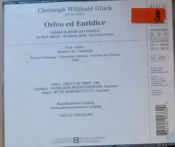 | Interpret | Václav Neumann | Gewandhausorchester Leipzig | Christoph Willibald Gluck | Grace Bumbry | Anneliese Rothenberger | Ruth-Margret Pütz |