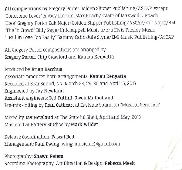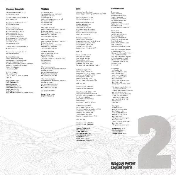 Od čias Kurta Ellinga sa v džeze nenašiel spevák, ktorý by svoju kariéru odštartoval tak brilantne ako Gregory Porter. S albumami "Water" (2010) a "Be Good" (2012), prvými dvoma kritikmi oceňovanými albumami pre nezávislé vydavateľstvo Motéma Music, sa Porter okamžite etabloval ako jeden z najlepších súčasných džezových spevákov. Podčiarkujú to aj dve nominácie na Grammy, ktoré za tieto albumy získal. Teraz predstavuje svoj netrpezlivo očakávaný tretí sólový album "Liquid Spirit" vo vydavateľstve Blue Note. Prezident Blue Note Don Was speváka povzbudil, aby aj v novom vydavateľstve zostal verný svojej jedinečnej umeleckej vízii. "Rozhodne sa považujem za jazzového speváka, ale nemenej milujem blues, čierny južanský soul a gospel," definuje sa Porter. "Tieto prvky si vždy nájdu cestu do mojej hudby. A vždy som si ich všímal aj v džeze." Na albume "Liquid Spirit" sa spevák opäť oprel o hudobníkov, ktorí tvorili jadro jeho kapely na predchádzajúcich dvoch albumoch: klaviristu Chipa Crawforda, ktorý je zároveň hudobným riaditeľom, bubeníka Emanuela Harrolda, basgitaristu Aarona Jamesa, alt saxofonistu Yosukeho Sata a tenor saxofonistu Tivona Pennicotta. V niektorých skladbách Porter doplnil kapelu trubkárom Curtisom Taylorom a organistom Glennom Patschom. K spevákovým starým priateľom patria aj producent Brian Bacchus a aranžér a spoluproducent Kamau Kenyatta. "Nepovedal som si: 'Dobre, teraz som v Blue Note Records a budem sa snažiť znieť ako Freddie Hubbard,'" vysvetľuje Porter. Nemal som konkrétny plán pre tento album." Chcel, aby album znel čo najorganickejšie. A bol presvedčený, že tento cieľ dosiahne skôr s tímom, ktorý spolu pracuje už roky, než s kapelou zloženou z hviezd. Porter má jeden z najpresvedčivejších a najoduševnenejších barytónových hlasov súčasnosti. Dokáže sprostredkovať emócie a ducha každej možnej piesne bez toho, aby sa uchýlil k teatrálnym trikom. Kritik Nate Chinen napísal v New York Times: "Gregory Porter má väčšinu toho, čo od jazzového speváka chcete, a možno aj pár vecí, o ktorých ste ani nevedeli, že ich chcete." Chválou nešetrí ani Porterov kolega Kurt Elling: "Som si veľmi istý kariérou Gregoryho Portera. Znie skvele a má naozaj skvelý koncept. Som rád, že sa rozvíja a že sa mu dostáva uznania a príležitostí roztiahnuť svoje tvorivé krídla." Jazzová diva Dee Dee Bridgewater v časopise JazzTimes Portera pochválila: "Takého speváka sme tu už dlho nemali. Je to úžasný skladateľ. Jednoducho rozpráva skvelé príbehy." A v tom má pravdu. Porter má skutočne úžasný dar písať úprimné piesne založené na osobných zážitkoch s intímnou a emocionálnou bezprostrednosťou. Navyše jeho chytľavé melódie okamžite zaujmú. Na albume "Liquid Spirit" Porter skúma podobné témy ako na svojom debutovom albume "Water": piesne sa zaoberajú romantickými vzostupmi a pádmi, jeho detstvom a sociálno-politickými postrehmi. Okrem toho interpretuje svojím nezameniteľným spôsobom tri klasické skladby: motownský hit "The 'In Crowd" od Dobieho Graya, "Lonesome Lover" Abbeyho Lincolna a Maxa Roacha a jazzový štandard "I Fall In Love Too Easily" od Jule Styne a Sammyho Cahna. "Snažím sa na každý album zaradiť niečo od ľudí, ktorí ma hlboko ovplyvnili. "Lonesome Lover" je moje vyznanie lásky Abbey Lincolnovi," prezrádza Porter. Gregory Porter sa narodil v roku 1971 v Bakersfielde v južnej Kalifornii, kde sa vďaka svojej matke, ktorá slúžila v cirkvi, už v ranom veku zoznámil s gospelovou hudbou. Ďalším významným vplyvom na jeho hudobný vývoj bola matkina rozsiahla zbierka nahrávok Nat King Colea. Napriek láske k hudbe sa Gregory, vybavený futbalovým štipendiom na Štátnej univerzite v San Diegu, chcel pôvodne venovať športovej kariére. Zranenie ramena však tieto plány predčasne ukončilo. A tak sa Porter - pod krídlami svojho mentora Kamau Kenyatta - začal naplno venovať hudbe. Keď Kenyatta v roku 1998 produkoval v Los Angeles album flautistu Huberta Lawsa "Remembers The Unforgettable Nat King Cole", pozval Portera, zanieteného fanúšika Nata Kinga Colea, do štúdia. Laws ho tam náhodou počul spievať klasiku Charlieho Chaplina "Smile" a bol taký nadšený, že ho spontánne požiadal, aby sa pripojil k nahrávaniu. Ďalšou šťastnou zhodou okolností bolo, že v tom čase sa v štúdiu zastavila aj sestra Huberta Lawa Eloise a videla Portera v akcii. Spevák mal krátko nato prijať úlohu v novom muzikáli It Ain't Nothin' But The Blues a odporučil hlavnú mužskú úlohu producentovi Gregory Porter. Po broadwayskej premiére denník New York Times opísal vtedy ešte neznámeho Portera ako "spevácku silu". Predstavenie bolo v tom roku nominované na štyri ceny Tony a tri ceny Drama Desk. Na prvý album Gregoryho Portera "Water", ktorý bol okamžite nominovaný na cenu Grammy, si však musel počkať dobrých desať rokov. Jeho druhý album "Be Good", tiež nominovaný na Grammy, bol v roku 2012 ešte pôsobivejší. "Porter spája jazz a soul lepšie než ktorýkoľvek z jeho súčasníkov," uviedol americký časopis Soul Tracks a v januári označil "Be Good" za potenciálne najlepší album roka. Hoci Porter odvtedy zdieľal pódium alebo bol v nahrávacom štúdiu s hviezdami ako Van Morrison, Wynton Marsalis, Herbie Hancock, Dianne Reeves, Nicola Conte a David Murray, nestratil pevnú pôdu pod nohami. "Ešte som to všetko nedokázal spracovať," priznáva. "Najmä keď som pracoval s takými hudobnými ikonami, ako sú Wynton a Herbie. Privítali ma s otvorenou náručou. To by som pred dvoma rokmi nečakal ani v tom najdivokejšom sne." Po vydaní albumu "Liquid Spirit" by mal byť Gregory Porter na ceste k novému kariérnemu vzostupu.