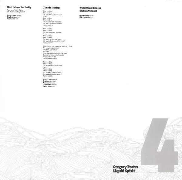 Gregory Porter: Liquid Spirit verzia na vinylu 2LP v štandardný edícii. Toto konkrétne vydanie vyšlo v Evropě vo vydavateľstve Blue Note v spolupráci s Universal Music Classics & Jazz France dňa 10. septembra 2014.