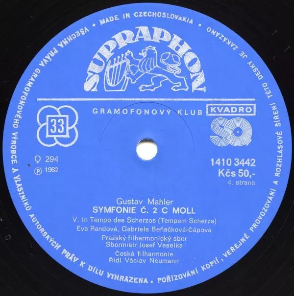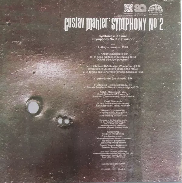 | Interpret | The Czech Philharmonic Orchestra | Václav Neumann | Gustav Mahler | Gabriela Beňačková | Czech Philharmonic Chorus | Eva Randová |
