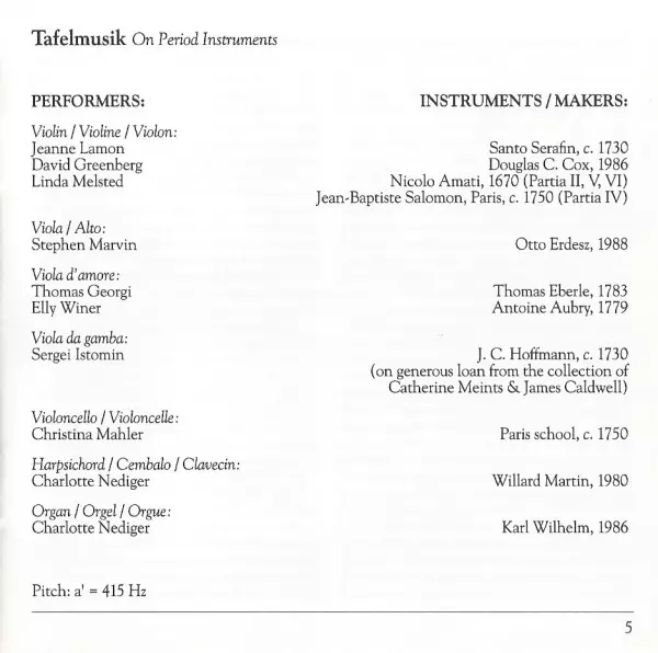 | Interpret | Tafelmusik Baroque Orchestra | Heinrich Ignaz Franz Biber | Jeanne Lamon |