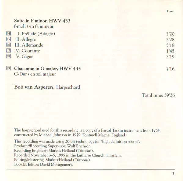 | Interpret | Georg Friedrich Händel | Bob van Asperen |