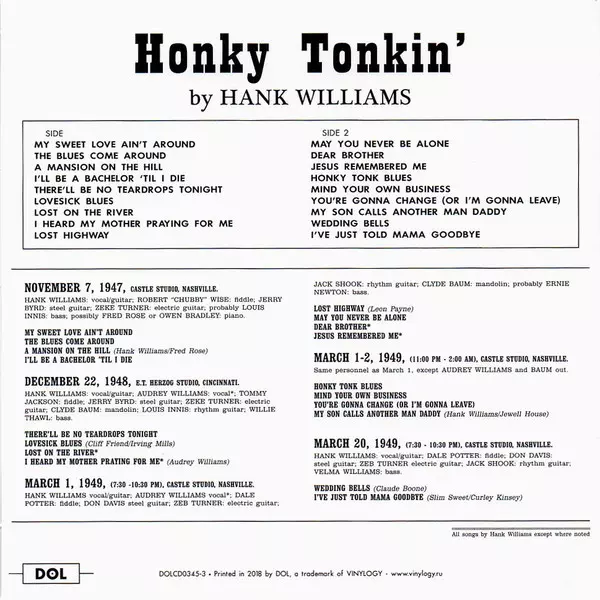 Hank Williams: Timeless Classic Albums verzia na 5CD/Box Set v štandardný edícii. Toto konkrétne vydanie vyšlo v Evropě vo vydavateľstve DOL dňa 16. novembra 2018. Album zasahuje do žánrov Folk, World, & Country a Country.