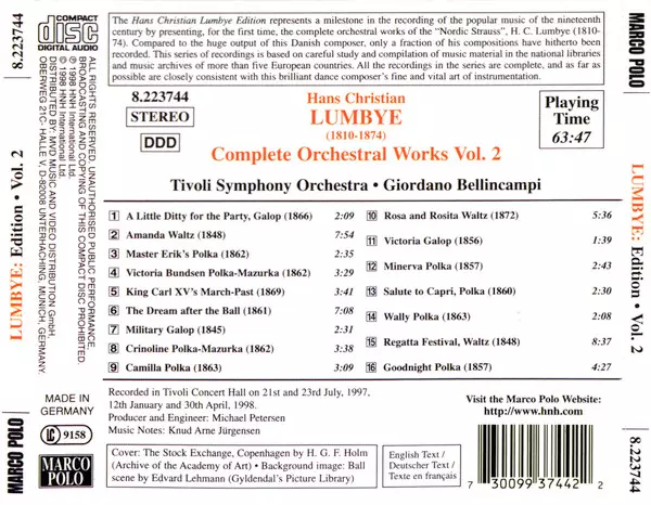 Danish violinist, conductor and composer of waltzes, polkas, mazurkas and galops . Lumbye's name is tightly tied to Tivoli, Copenhagen, where he was the orchestra's conductor and leader for 30 years. Grandfather of Tippe Lumbye and Georg Høeberg