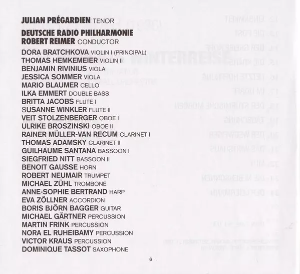 | Interpret | Julian Prégardien | Hans Zender | Deutsche Radio Philharmonie Saarbrücken Kaiserslautern | Robert Reimer |
