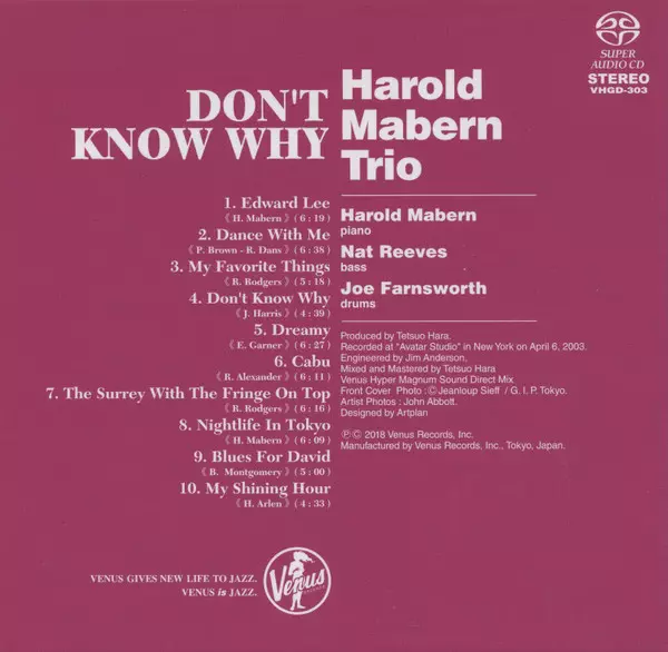 | Viac informácií | SACD Jewelcase Japan — Venus Records |
