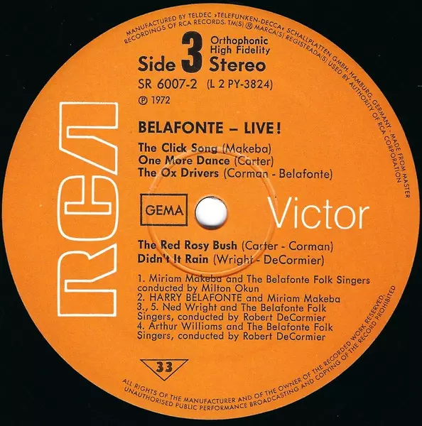 | A4 | Harry Belafonte, The Belafonte Folk Singers: Chickens | ||