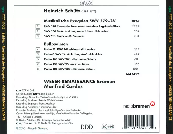 Interpret | Heinrich Schütz | Manfred Cordes | Weser-Renaissance |
