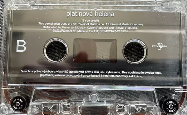 Helena Vondráčková: Platinová Helena verzia na MC v štandardný edícii. Toto konkrétne vydanie vyšlo v Česku a Slovensku vo vydavateľstve Universal v spolupráci s Bon Art Music dňa 11. novembra 2002. Album zasahuje do žánrov Pop, Vokál, Balada, Disco a Československá klasika.