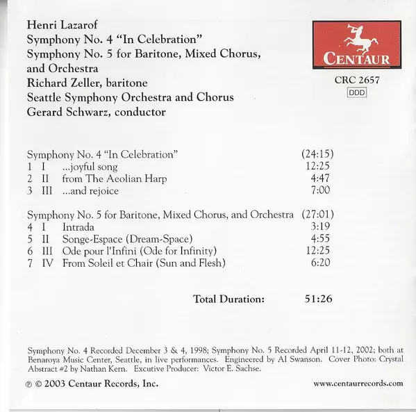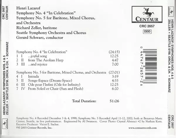 | Interpret | Seattle Symphony Orchestra | Gerard Schwarz | Richard Zeller | Henri Lazarof |