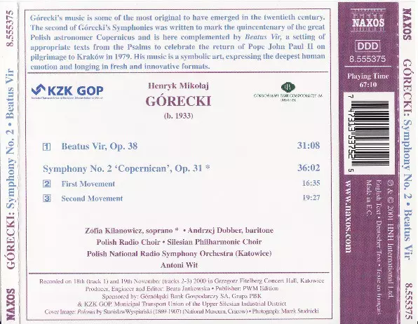 | Interpret | Henryk Górecki | Chór Polskiego Radia | Antoni Wit | Polish National Radio Symphony Orchestra | Zofia Kilanowicz | Chór Filharmonii Śląskiej W Katowicach | Andrzej Dobber |