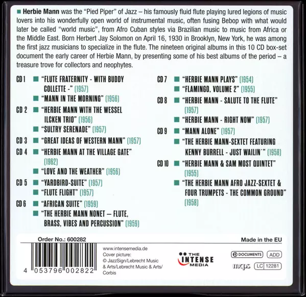 Herbie Mann: Milestones Of A Legend - The Best 1954-1962 verzia na 10CD/Box Set v remasterované edícii. Toto konkrétne vydanie vyšlo v Evropě vo vydavateľstve The Intense Media v spolupráci s Documents dňa 5. apríla 2016. Album zasahuje do žánrov Jazz a Bop.
