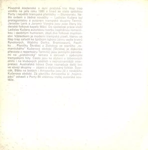 Hop Trop je česká folková a country skupina, ktorú v roku 1976 založil jej líder, spevák a gitarista Jiří Tichota, ktorý bol predtým členom legendárnej českej folkovej skupiny "Spirituál kvintet". Hudba skupiny je charakteristická zmesou tradičnej českej ľudovej hudby s prvkami cou...
