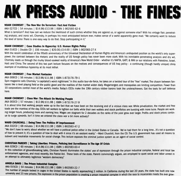 | Vydavateľstvo | AK Press Audio | Alternative Tentacles |