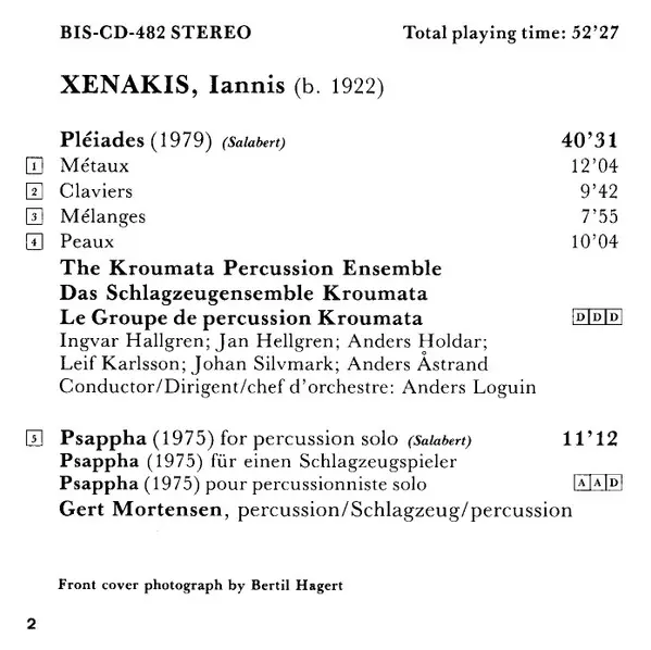 | Interpret | Iannis Xenakis | Kroumata Percussion Ensemble | Gert Mortensen |