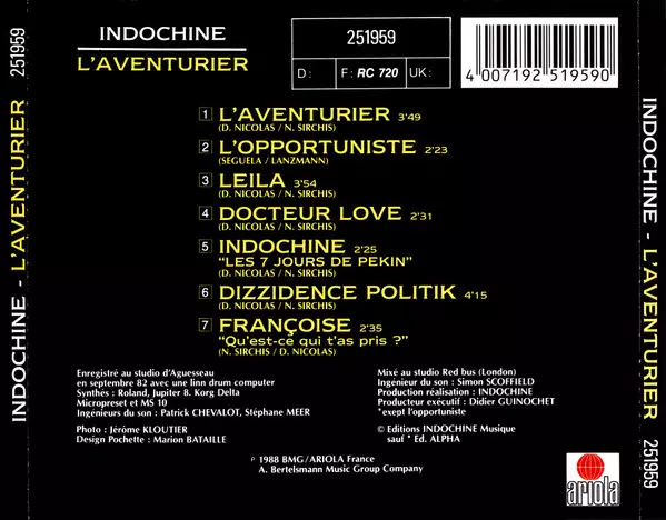 Indochine: L'Aventurier verzia na CD v štandardný edícii. Toto konkrétne vydanie vyšlo v Evropě vo vydavateľstve Ariola dňa 22. apríla 2020. Album zasahuje do žánrov Rock, Pop, Elektronická hudba, New Wave, Pop Rock a Synth-pop.