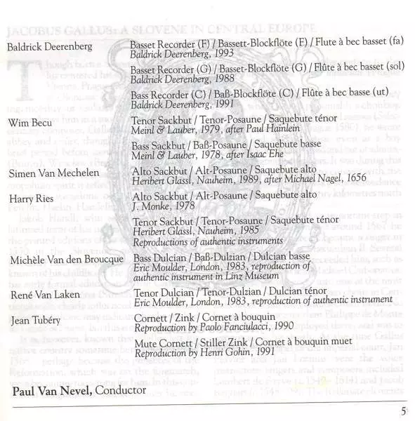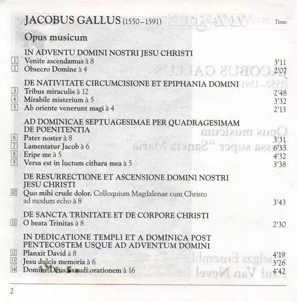 | Interpret | Huelgas-Ensemble | Paul Van Nevel | Jacobus Gallus |