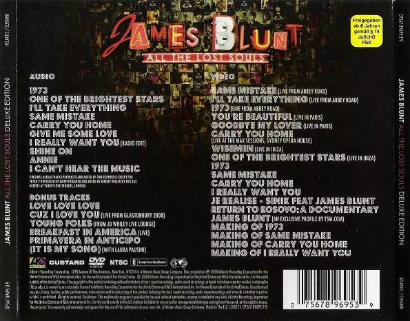 James Blunt: All The Lost Souls DLX verzia na CD/DVD v deluxe edícii. Toto konkrétne vydanie vyšlo v Evropě vo vydavateľstve Atlantic v spolupráci s Custard Records dňa 20. januára 2009.