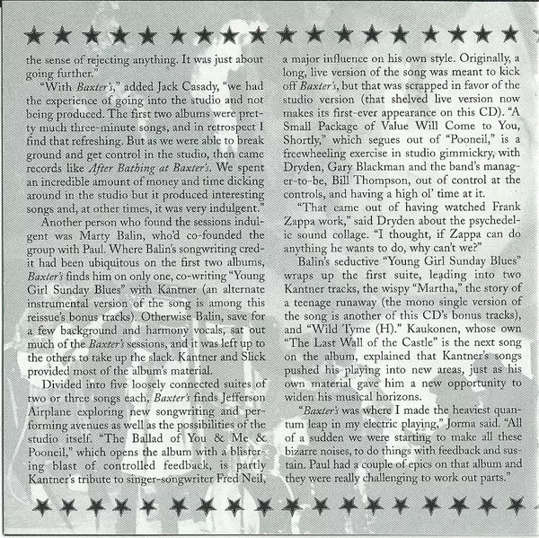 "After Bathing at Baxter's" is the third album by San Francisco rock band Jefferson Airplane. Jefferson Airplane started 1967 with Surrealistic Pillow and ended it with After Bathing at Baxter's, and what a difference ten months made. The album was one of the purest psychedelic albums in rock, and it was also much bolder. The album saw the band ...