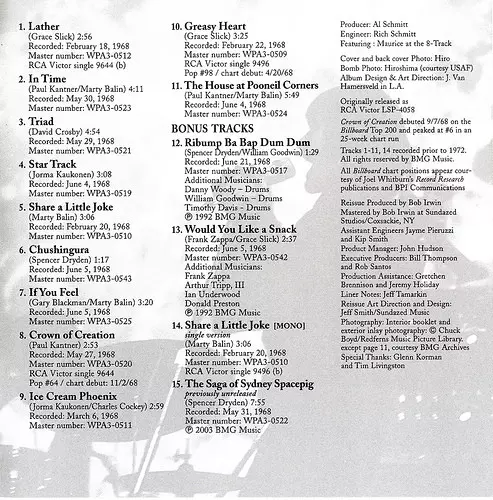 The album Crown of Creation, released in 1968, was the sixth album by Jefferson Airplane and was recorded at a time of great change in the band, which had just parted ways with original lead singer Grace Slick. The album showcases the band's signature psychedelic sound with songs such as "Lather" and "In Time". The album was a critical and comme...