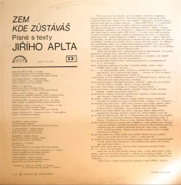 | Názov | Zem, Kde Zůstáváš (Písně A Texty Jiřího Aplta) |