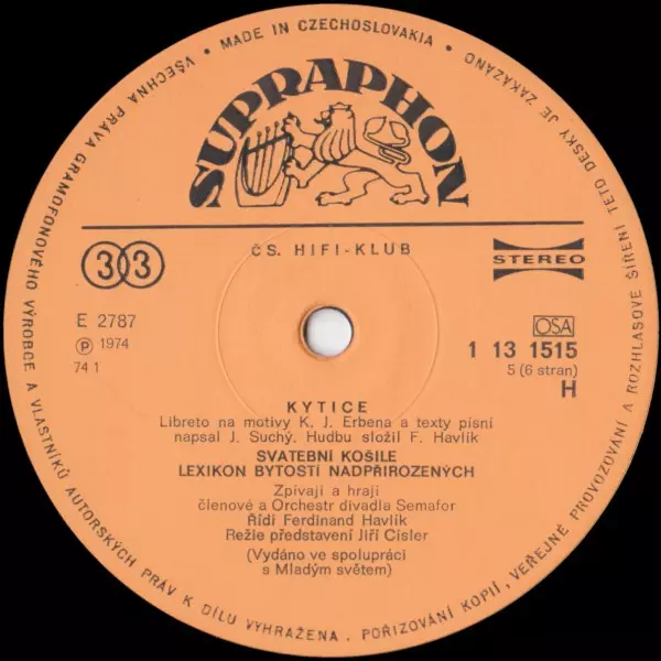 | Vydavateľstvo | Supraphon | Čs. Hifi-klub |