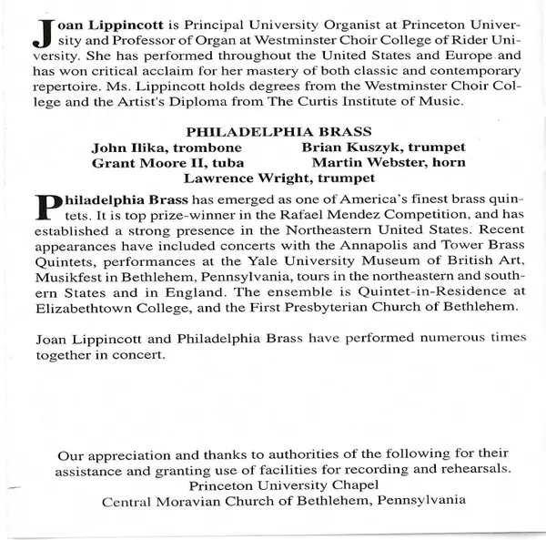 | Interpret | Joan Lippincott | The Philadelphia Brass |