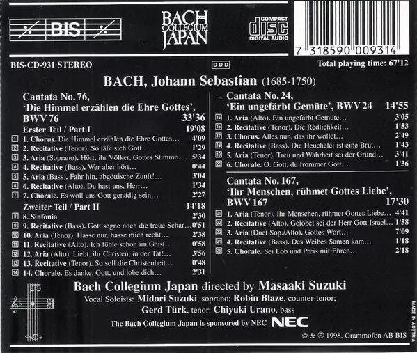| Názov | Cantatas 9 BWV 24 Ein Ungefärbt Gemüte - BWV 76 Die Himmel Erzählen Die Ehre Gottes - BWV 167 Ihr Menschen, Rühmet Gottes Liebe |