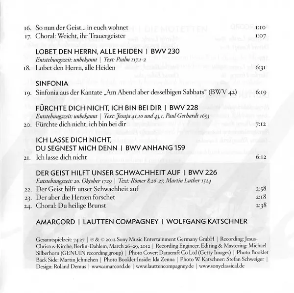 | Interpret | Johann Sebastian Bach | Lautten Compagney | Amarcord | Wolfgang Katschner |