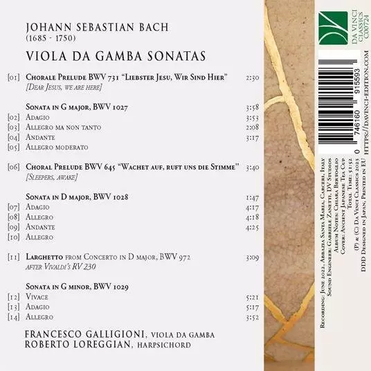 | Názov | Viola Da Gamba Sonatas, Chorale Prelude BWV 731・645, Larghetto From BWV 972 |