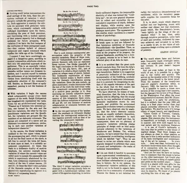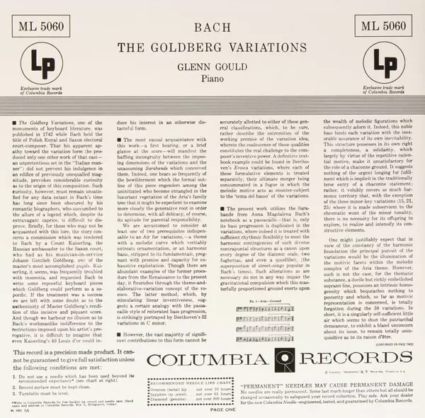 Tato poslední nahrávka, vydaná ještě za Gouldova života, uzavírá diskografický kruh, který tak velkolepě začal stejným dílem v roce 1955. "Rád bych si myslel, že v tom, co dělám, je jakýsi podzimní klid, takže většina hudby působí uklidňujícím dojmem. Bylo by úžasné, kdyby to, co realizujeme v podobě nahrávky, bylo v rámci možností dokonalé - ne...