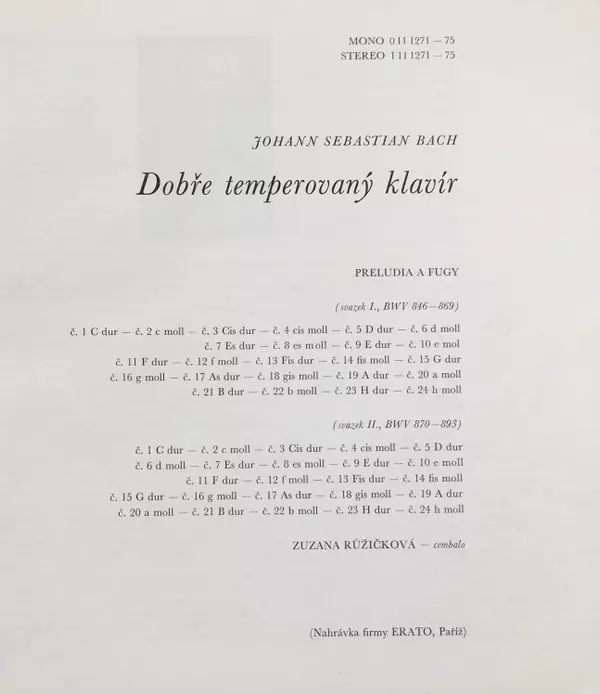 | Interpret | Johann Sebastian Bach | Zuzana Růžičková |