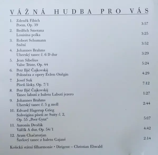 | Interpret | Bedřich Smetana | Pyotr Ilyich Tchaikovsky | Antonín Dvořák | Johannes Brahms | Edvard Grieg | Robert Schumann | Jean Sibelius | Josef Suk | Zdeněk Fibich | Aram Khatchaturian | Slovak State Philharmonic Orchestra, Košice | Christian Ehwald |