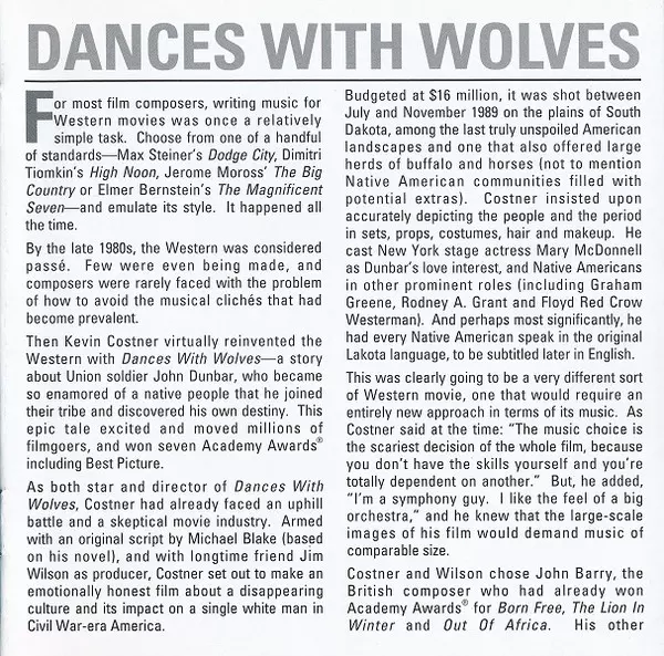| Názov | Dances With Wolves (Original Motion Picture Soundtrack) |