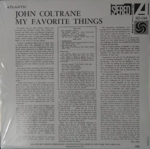 John Coltrane: My Favorite Things verzia na vinylu LP v štandardný edícii. Toto konkrétne vydanie vyšlo v Evropě vo vydavateľstve Atlantic v spolupráci s Rhino Records (2) dňa 10. mája 2019.
