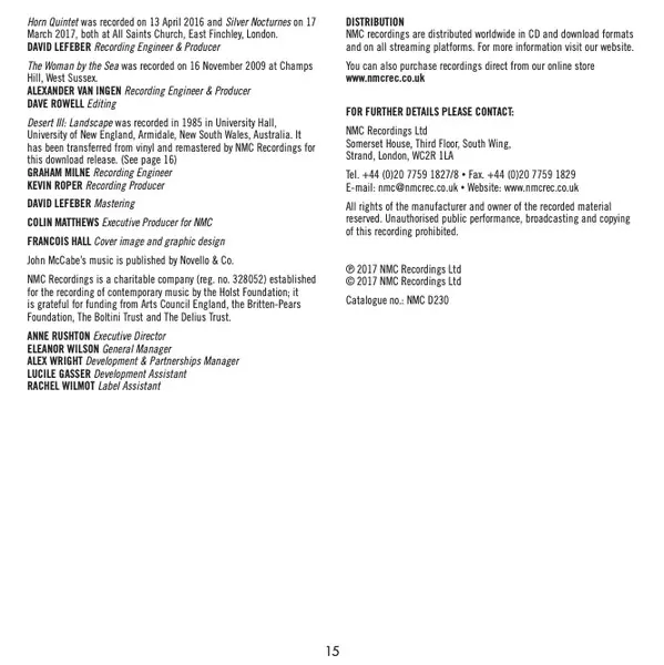 | Názov | Silver Nocturnes; The Woman by the Sea; Horn Quintet |