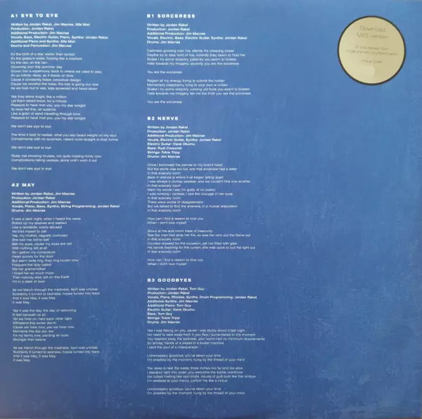 Bass, Written-By Tom Guy (3) | Producer [Additional Production], Synth, Drums, Written-By Jim Macrae (2) | Vocals, Piano, Electric Guitar, Synth [Synths], Written-By Jordan Rakei