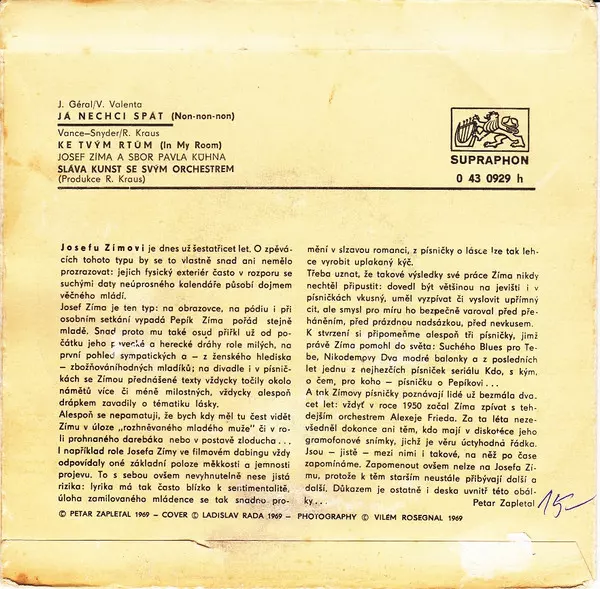 | Viac informácií | 1970 Original 45RPM Mono Single, Supraphon (Czechoslovakia) |