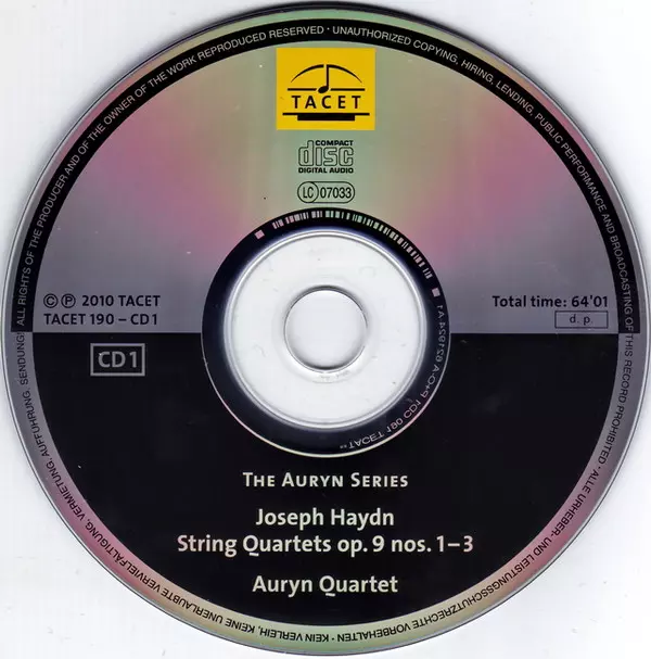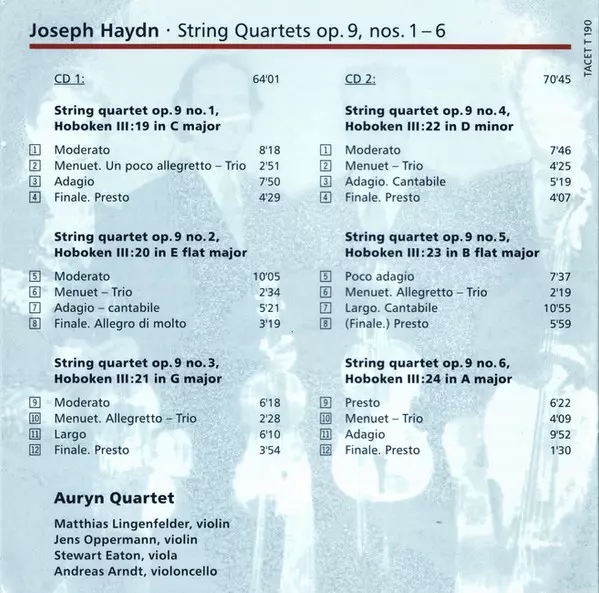 | Názov | Auryn's Haydn: Op. 9 (String Quartets ∙ Vol. 3 Of 14 Op. 9, Nos. 1 – 6) |