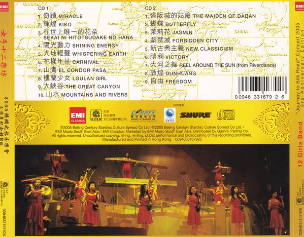 女子十二乐坊: "Journey to Silk Road" Concert 2005 3rd Anniversary Edition verzia na 2CD v štandardný edícii. Toto konkrétne vydanie vyšlo v Hong Kong vo vydavateľstve EMI Classics dňa 19. júla 2005. Album zasahuje do žánrov Stage & Screen a Folk, World, & Country.