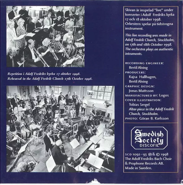 | Interpret | Johann Sebastian Bach | Drottningholms Barockensemble | Anders Öhrwall | Adolf Fredriks Bachkör |