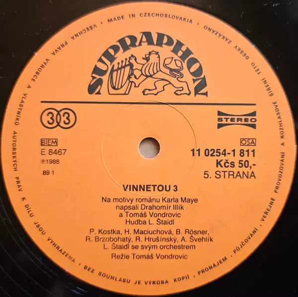 Karl May: Vinnetou 3 verzia na vinylu LP v štandardný edícii. Toto konkrétne vydanie vyšlo v Československu vo vydavateľstve Supraphon roka 1989. Album zasahuje do žánrov Non-Music, Detské, Hovorené slovo a Story.