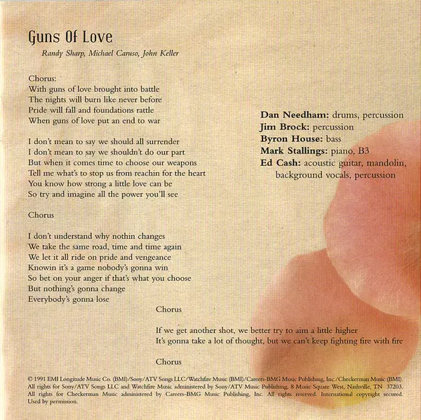 Acoustic Guitar, Mandolin, Backing Vocals [Background Vocals], Percussion Ed Cash | Bass Byron House | Drums, Percussion Dan Needham | Percussion Jim Brock | Piano, Organ [B3] Mark Stallings | Steel Guitar David Johnson (22) | Written-By Allen Shamblin, Beth Nielsen Chapman