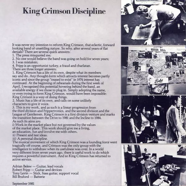 Po rozpade klasickej zostavy King Crimson v polovici 70. rokov sa Robert Fripp postupne stiahol z očí verejnosti, objavil sa ako gitarista na albumoch Petra Gabriela a Davida Bowieho a ako producent skupín The Roches, Peter Gabriel a Daryl Hall. Nahral tiež svoj vysoko oceňovaný sólový debut "Exposure" a vyvinul gitarový systém Frippertronics. V...