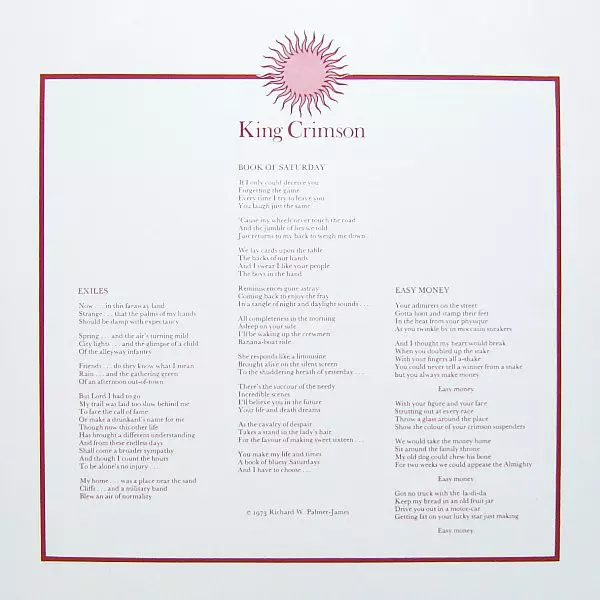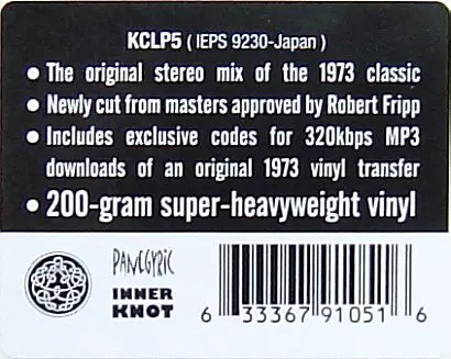 Album so svojím surovým tónom, inšpirovanými improvizáciami a tvrdými, zvláštnymi rytmami znamenal radikálny zlom pre túto pokrokovú skupinu a bol prvým, na ktorom sa ako členovia kapely podieľali Bill Bruford a John Wetton. Táto superťažká 200g vinylová reedícia, ktorá je uložená v reprinte pôvodného obalu, bola zreprodukovaná podľa majstro...